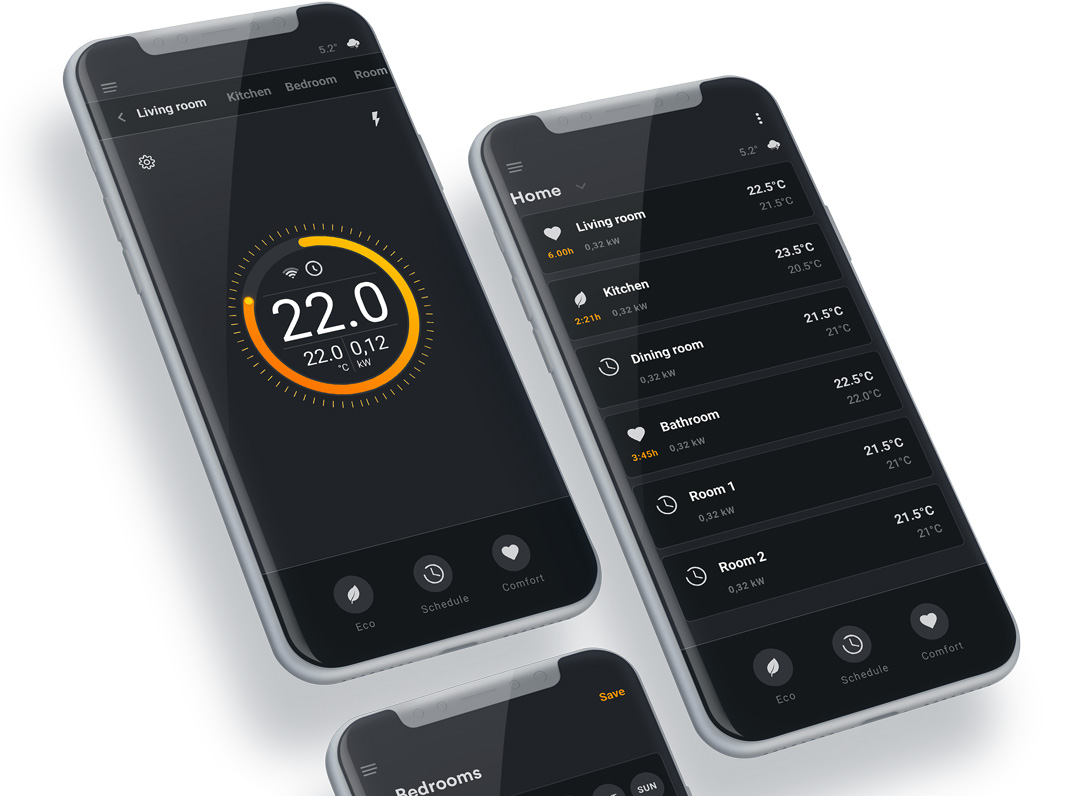 Aplikacija vsem lastnikom oz. upravljalcem sistemov ogrevanja močno olajša optimizacijo ogrevanja. Z njeno pomočjo lahko na en mah spreminjate nastavitve v celotnem grelnem sistemu (stanovanju, hiši, večih apartmajih…) ali pa posamičnih grelnih elementov. S samo enim klikom lahko spreminjate režime ogrevanja (Eco, Comfort, Urnik), vključite ali izključite ogrevanje na želeni lokaciji/večih lokacijah, spreminjate vse nastavitve ogrevanja, hkrati pa lahko spremljate vreme na vseh vnesenih lokacijah. Upravljanje še nikoli ni bilo lažje!